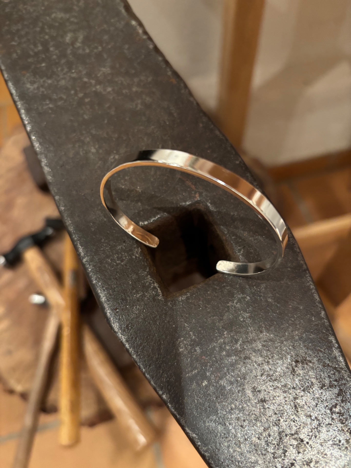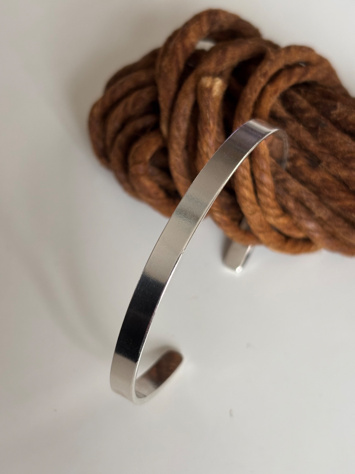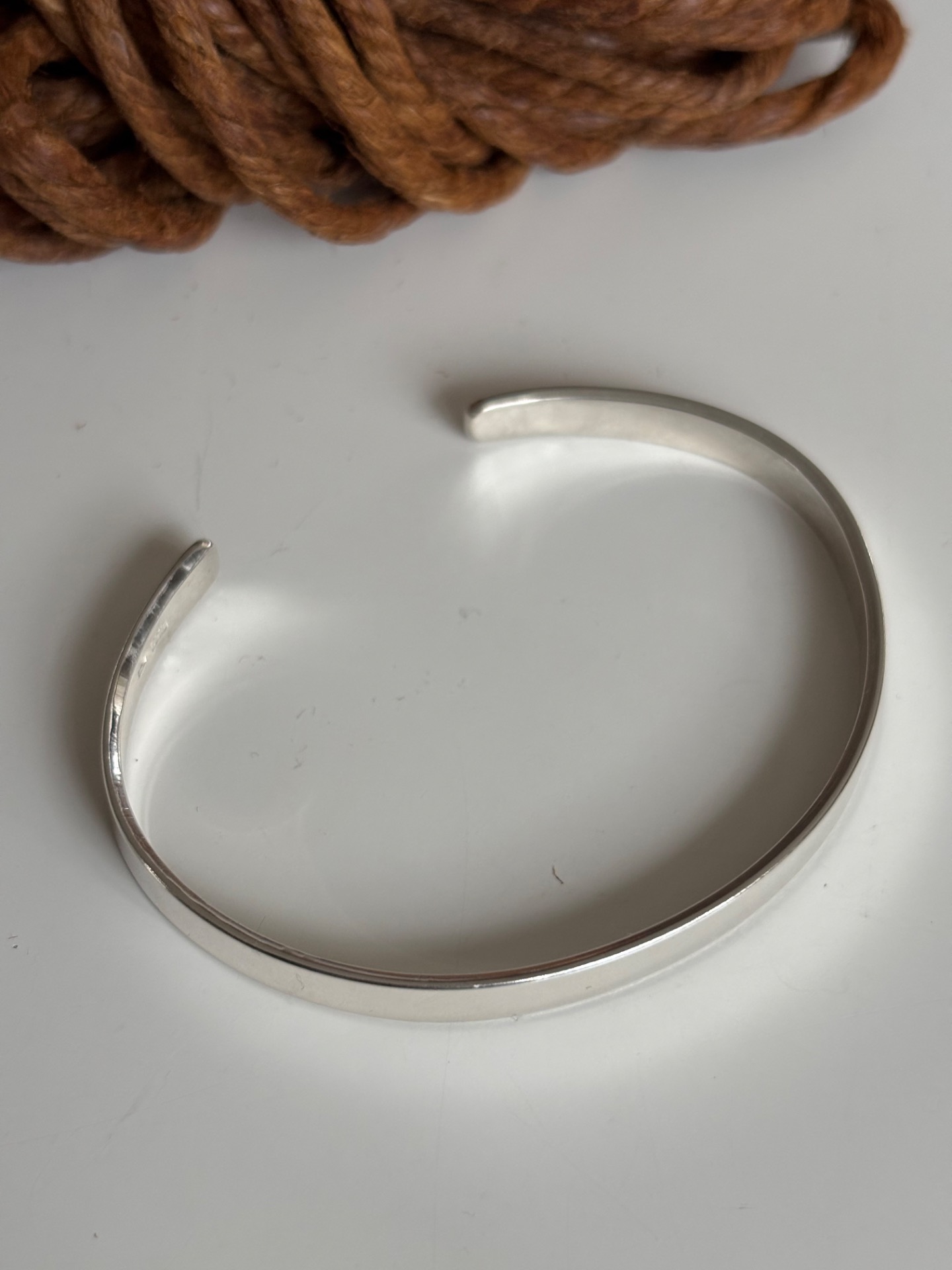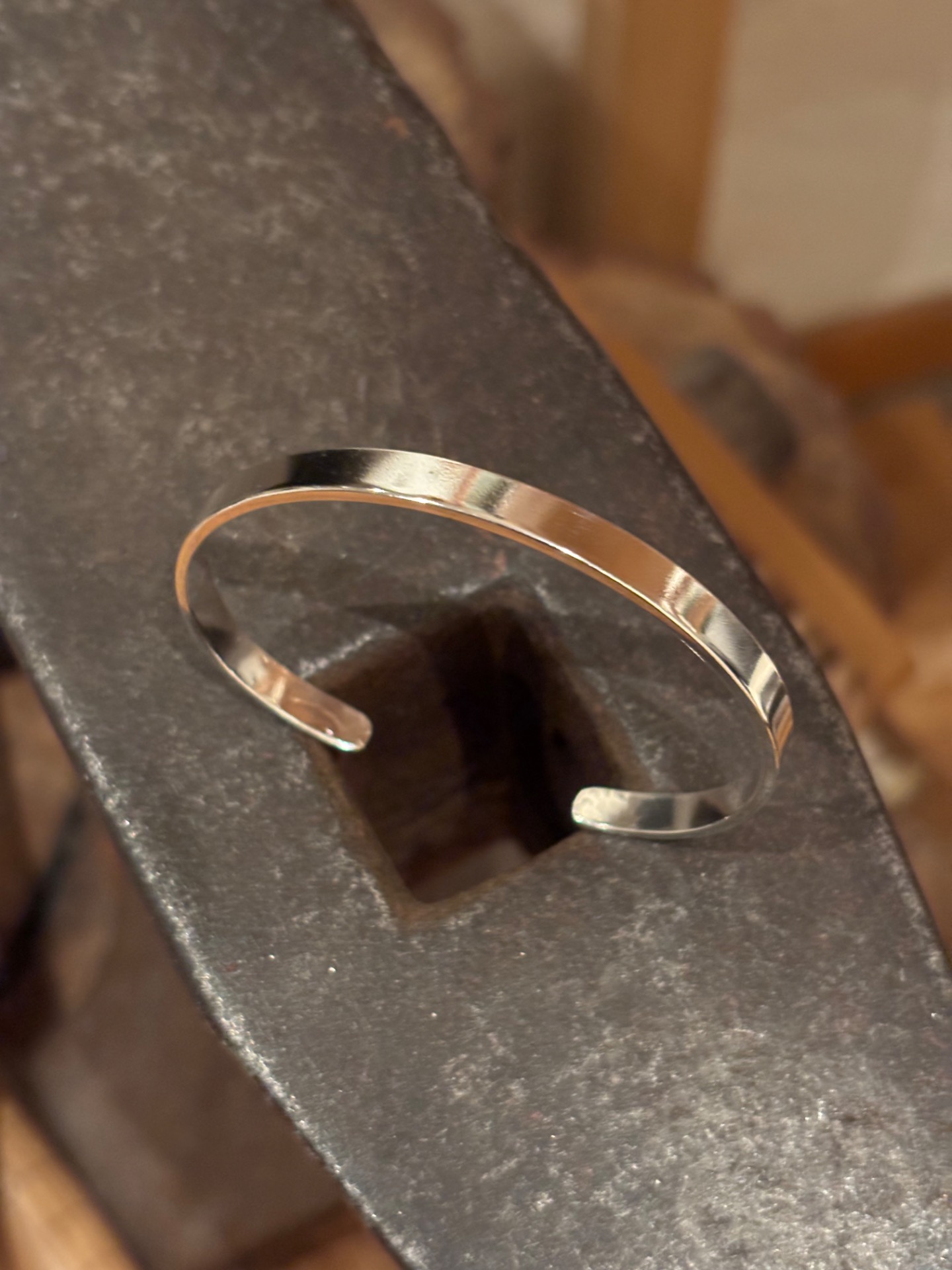 Ett massivt stelt armband gjort av 1,5mm tjock silverplåt. 0,5cm bred. Mät omkretsen på handleden och välj storlek. Välj även utförande.